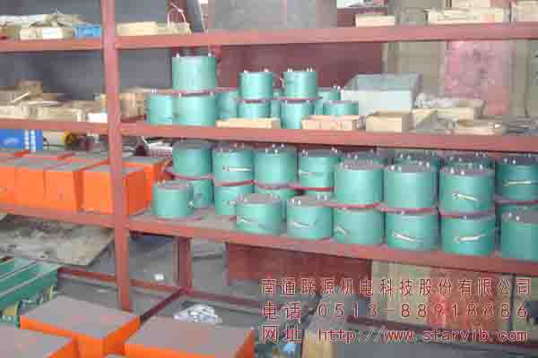 在水泥料倉的一方壁上,予留一個安裝孔,在倉內設置鋼板制的振動板,把振動板上部用螺栓緊固在水泥料倉倉壁上,ZFB型裝置安排在振動板下部,如圖所示的三分之一的板長。振動板的長度,一般與混凝土料倉側壁縱向長度相同。