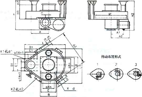 型 號(hào) | L | L1 | L2 | H | H1 | F | E | E1 | E2 | E3 | G | G1 | G2 | G3 | n | d |
