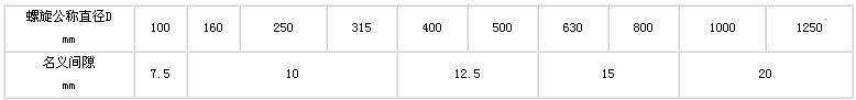 5.螺旋體外徑與機殼間的間隙應符合下表規定,間隙不得少于名義間隙的50%如需要大間隙,按用戶要求制作。