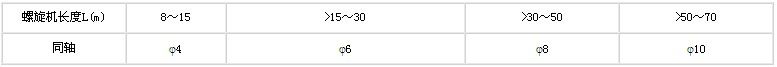 6.螺旋機各中間懸吊應軸承應可靠地固定在機殼吊耳上,與相鄰螺旋聯接后螺旋轉動均勻,不得有被卡住現象。安裝時可在吊軸承底座與機殼吊耳間加調整墊片以保證各吊軸同軸,安裝后螺旋體軸線的同軸度應符合下表規定。