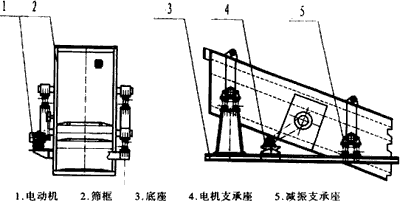 YZ圓振動(dòng)篩由塊偏心式激振器、篩箱、電動(dòng)機(jī)、底座及支承裝置組成。篩面傾角20°。